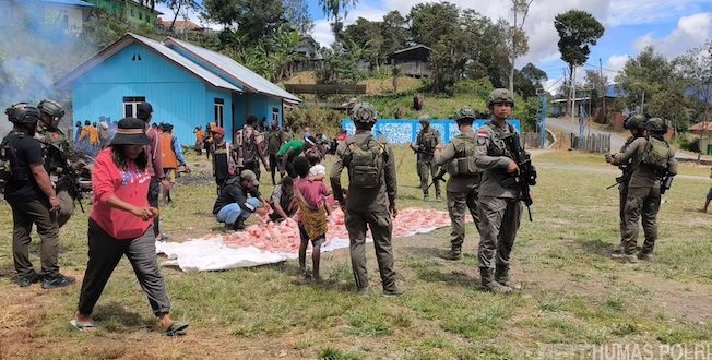 Intan Jaya — Suasana kebersamaan mewarnai pelaksanaan tradisi bakar batu di Gereja Antiokhia, Distrik Sugapa, Kabupaten Intan Jaya, Senin (6/4/2026). Dalam kegiatan adat tersebut, personel Satgas Operasi Damai Cartenz 2026 hadir tidak hanya untuk melakukan pengamanan, tetapi juga berinteraksi langsung dengan masyarakat setempat. Sejak pagi, personel melaksanakan apel persiapan sebelum …