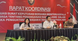 Jakarta – Pemerintah melalui Kementerian Koordinator Bidang Politik,Hukum, dan Keamanan (Kemenko Polhukam) menggelar rapat koordinasinasional guna mengevaluasi implementasi Surat Keputusan Bersama (SKB)tentang penanganan radikalisme di kalangan Aparatur Sipil Negara(ASN). Agenda ini dinilai krusial untuk memperkuat wawasan kebangsaanASN sebagai garda terdepan dalam pelayanan publik dan penjagapersatuan nasional. Rapat yang dipimpin Asisten Deputi Koordinasi Kesatuan Bangsa, CecepAgus Supriyatna, menyoroti perlunya evaluasi menyeluruh …