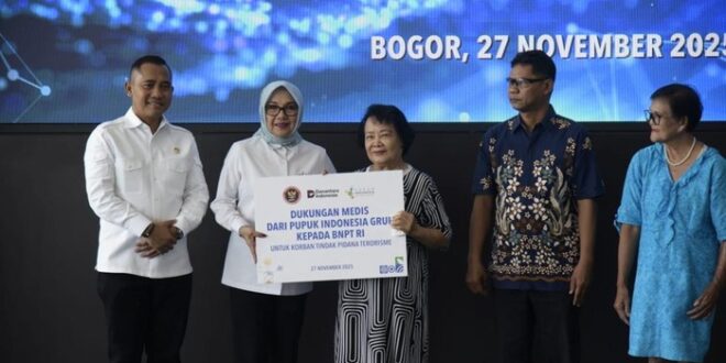 Bogor — Badan Nasional Penanggulangan Terorisme (BNPT) bersama Pupuk Indonesia Grup kembali menyalurkan dukungan pemulihan bagi korban tindak pidana terorisme sebagai wujud kehadiran negara dalam membantu para penyintas. Kolaborasi ini mempertegas komitmen kedua pihak dalam memastikan pemulihan, perlindungan, dan peningkatan kesejahteraan korban, sejalan dengan mandat Undang-Undang Nomor 5 Tahun 2018.