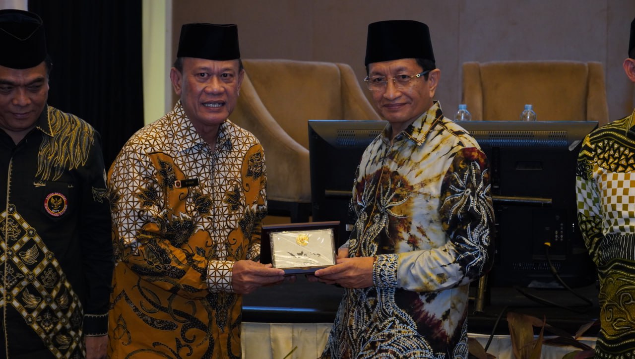 Deputi 1 BNPT Mayjen TNI Nisan Setiadi SE, MSi, dan Imam Besar Masjid Istiqilal KH Nasaruddin Umar pada kegiatan Sarasehan Dai dan Daiyah Sulawesi Selatan di Makassar 1