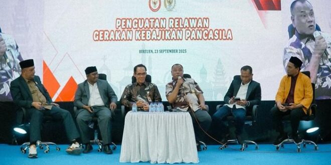Bireuen – Anggota DPR RI Fraksi Partai Golkar, Samsul Bahri Tiyong, berkolaborasi dengan Badan Pembinaan Ideologi Pancasila (BPIP) menyelenggarakan kegiatan Penguatan Relawan Gerakan Kebajikan Pancasila di Universitas Islam Aceh, Payah Lipah, Matang Geuleumpang Dua, Kabupaten Bireuen, Selasa (23/9/2025).