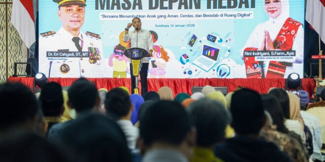 Sosialisasi bertajuk “Gawai Sehat Masa Depan Hebat” digelar di Convention Hall Surabaya, Rabu (14/1/2026). Pemkot Surabaya melibatkan sejumlah instansi strategis, antara lain Densus 88 Antiteror, Badan Narkotika Nasional (BNN), Polrestabes Surabaya, serta Forum Satu Data, sebagai upaya peringatan dini bagi orang tua dan tenaga pendidik.
