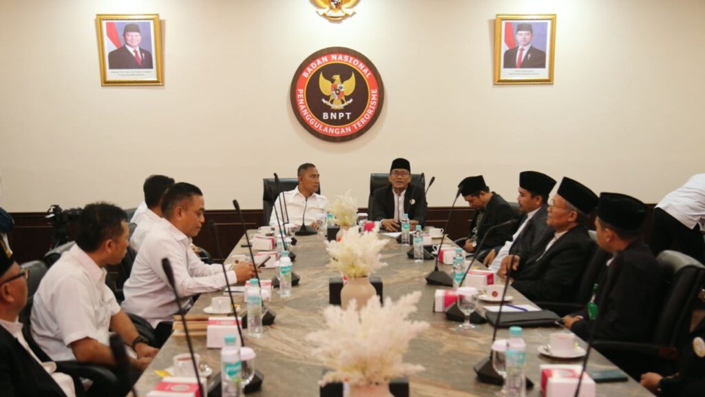 Kepala BNPT RI, Komjen Pol. Eddy Hartono, S.Ik., M.H., dan jajaran menerima para pengurus PP FSUI ini yang berlangsung Ruang Rapat Utama (Rupatam), kantor BNPT, Komplek IPSC Sentul, Kab. Bogor, Rabu (14/5/2025)