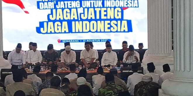 Jakarta – Ratusan pejabat pemerintahan daerah, tokoh lintas iman, serta pimpinan ormas berkumpul dalam istigasah dan doa bersama bertajuk “Jaga Jateng, Jaga Indonesia”. Acara penuh kekhidmatan itu digelar di Wisma Perdamaian, Tugu Muda Semarang, Minggu (31/8/2025) malam.