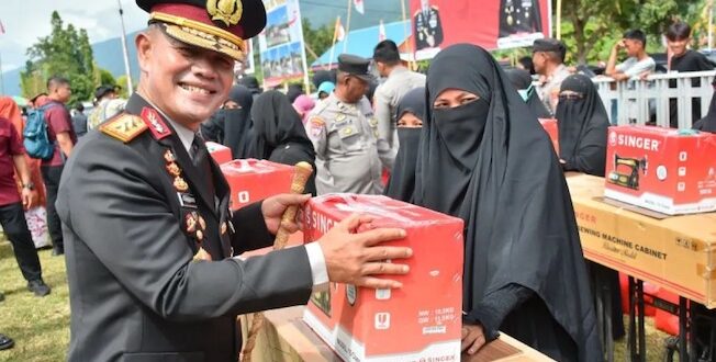 Palu – Kepolisian Daerah (Polda) Sulawesi Tengah menyerahkan bantuan sosial berupa delapan unit mesin jahit kepada istri mantan narapidana terorisme (napiter) di Kabupaten Poso.