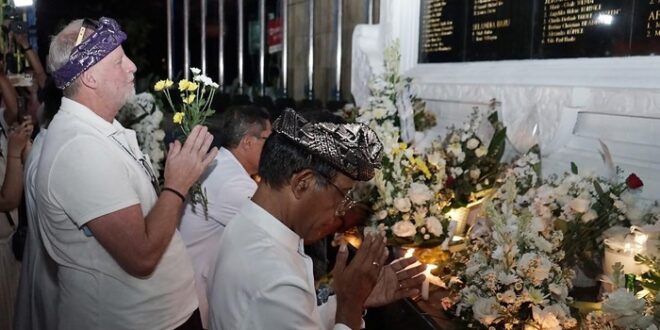 Kuta — Langit sore di Jalan Raya Legian, Badung, tampak tenang. Namun, di sekitar Tugu Peringatan Bom Bali (Ground Zero), suasana justru diliputi haru. Minggu (12/10) itu, ratusan orang datang silih berganti membawa bunga, menundukkan kepala, dan berdoa di depan tugu yang menjadi saksi bisu tragedi kemanusiaan terbesar di Bali pada tahun 2002.
