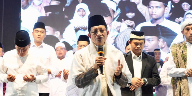 Tangerang — Ribuan jamaah memadati halaman Pondok Pesantren Al Ikhlas Assalam, Tangerang, Selasa (2/9/2025) malam. Lantunan dzikir dan doa bergema, dipimpin langsung Menteri Agama Nasaruddin Umar yang hadir untuk mengajak umat bersama-sama memohon kepada Allah agar bangsa tetap dalam kedamaian dan kesejahteraan.