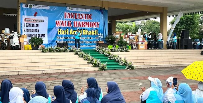 Depok — Kantor Kementerian Agama (Kemenag) Kota Depok menggelar kegiatan Fantastic Walk Harmony dalam rangka memperingati Hari Amal Bhakti (HAB) Kemenag Tahun 2026, yang dipusatkan di Alun-Alun Kota Depok, Sabtu (17/1/2026).