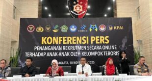 Jakarta — Detasemen Khusus (Densus) 88 Antiteror Polri mengungkap jaringan perekrut anak yang berupaya menarik pelajar ke aktivitas kelompok teror melalui berbagai platform digital. Lima tersangka dewasa berhasil ditangkap dalam tiga rangkaian operasi sejak akhir Desember 2024 hingga Senin, 17 November 2025. Juru Bicara Densus 88, AKBP Mayndra Eka Wardhana, menjelaskan dalam konferensi pers di Gedung Bareskrim Polri bahwa penangkapan …