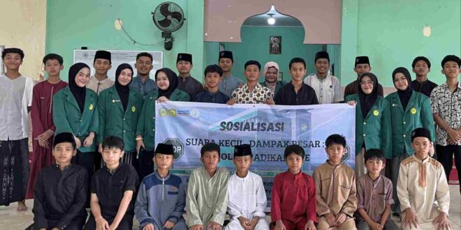 Pekanbaru — Mahasiswa Universitas Muhammadiyah Riau (UMRI) Fakultas MIPA dan Kesehatan, Program Studi S1 Kebidanan, menggelar kegiatan sosialisasi bertema radikalisme bertajuk “Suara Kecil, Dampak Besar: Menolak Radikalisme” di Panti Asuhan Putra Muhammadiyah, Pekanbaru, Jumat (19/12/2025) sekitar pukul 13.30 WIB.