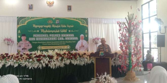 Kaimana — Peringatan Maulid Nabi Besar Muhammad SAW yang digelar Polres Kaimana bersama Bhayangkari Cabang Kaimana di Aula Polres, Senin (8/9/2025), menjadi ajang mempererat kebersamaan dan meneguhkan nilai toleransi.