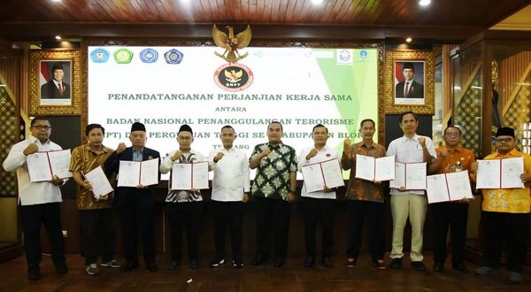 Pernyataan tersebut disampaikan usai penandatanganan nota kesepakatan antara BNPT dan Pemerintah Kabupaten Blora, serta perjanjian kerja sama dengan sejumlah perguruan tinggi di daerah tersebut pada Jumat (21/11).