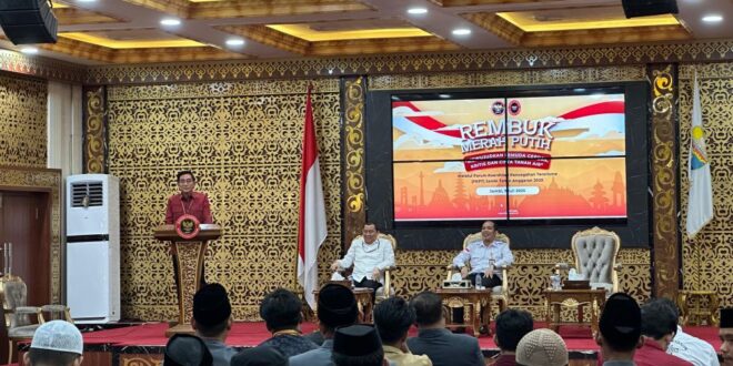 Jambi – Forum Koordinasi Pencegahan Terorisme (FKPT) Provinsi Jambi menggelar kegiatan bertajuk Rembuk Merah Putih, Rabu (9/7/2025). Acara ini menghadirkan berbagai elemen masyarakat, mulai dari organisasi keagamaan, organisasi kemahasiswaan, perwakilan pondok pesantren, hingga insan pers, dengan satu tujuan utama: menanamkan semangat kebangsaan dan memperkuat daya tangkal terhadap paham radikal.