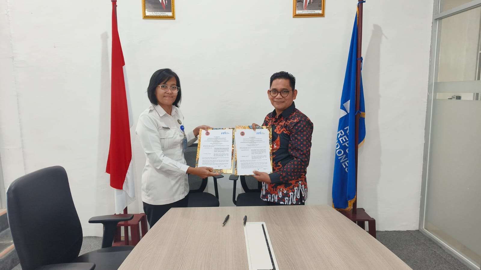 Ketua FKPT Sulbar, Muhammad Sahlan dan Kepala Stasiun RRI Mamuju, Rina Infantini,